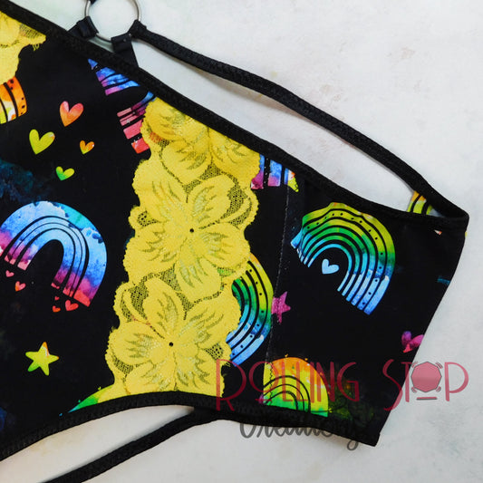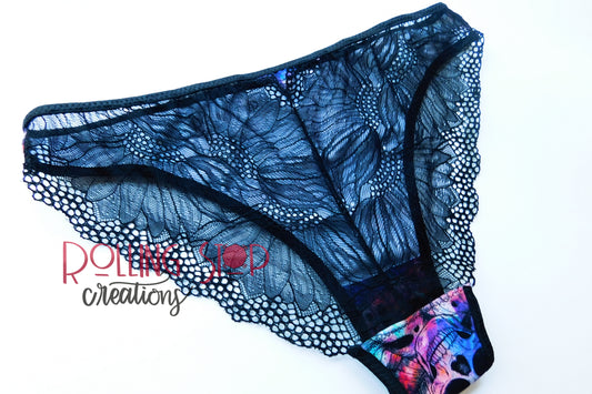 Rainbow Powder Monstera Skulls Lace Accent Pantydrawls