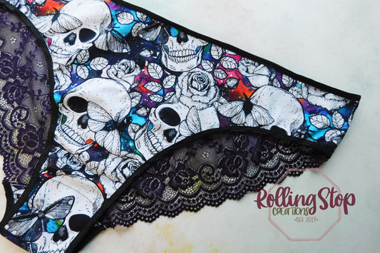 Royalty Skulls & Moths Lace Accent Pantydrawls
